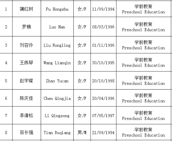 教育科学学院2018年留学计划学生公示名单