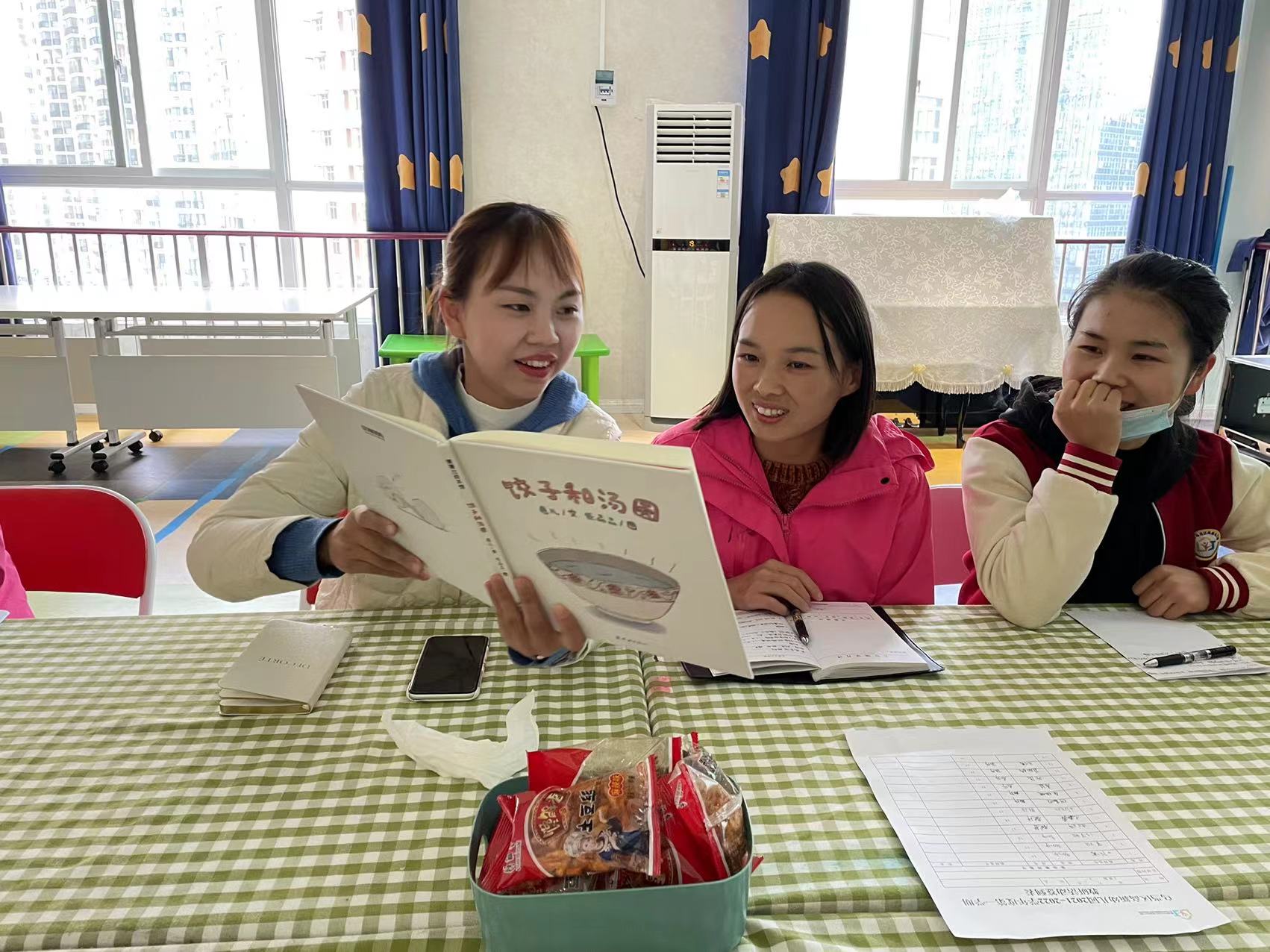 教研活动开始由李婷老师介绍项目学习小组的“代币兑换”激励机制,目的是激发参与项目学习小组老师的积极主动性。接着由罗婷进行了“绘本基本结构和作用”的主题讲座,该主题是基于第一次项目学习小组的教研活动中老师们反思实践的难点问题形成的,罗婷系统详细的介绍了绘本的封面、环衬、扉页和正文的基本结构并结合案例生动的讲解了各结构的作用。在主题讲座后教师们分成两个小组,对传统文化绘本“饺子和汤圆”进行了团体探究,探究问题围绕该绘本的基本结构和作用以及其他绘本评析维度进行展开。接下来,由幼儿园的教研主任孙秋老师和李婷老师分别进行绘本推荐活动和实践案例反思活动。最后,项目学习小组老师们进行一周实践反思,并基于实践难点确定了下一次活动的主题为“基于年龄特征绘本选择策略”。
