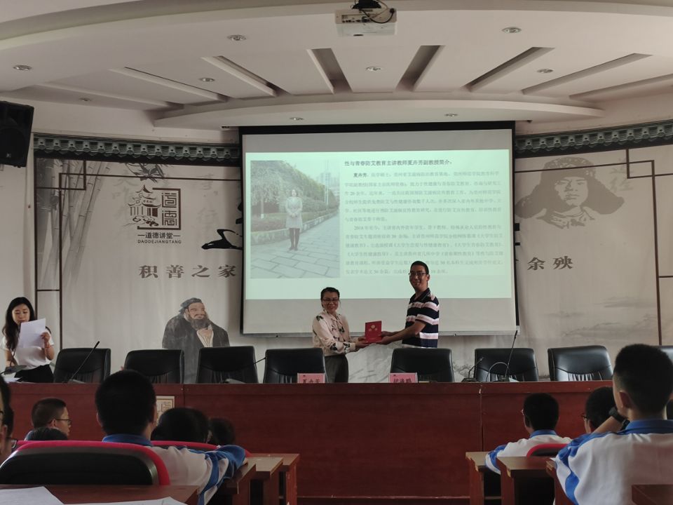 自2020年12月4日夏卉芳对贵阳市乌当中学班主任及学生进行性健康教育提升培训以来,得到乌当中学肖文渊校长、罗安伟副校长等领导、老师与学生的一致肯定。为了进一步全面正确引导高中生认识两性知识,促进高中生理性对待自我萌芽的情感,让学生拥有正常的同学情谊,健康地学习和成长,乌当中学邀请夏卉芳副教授进行“高中生青春期两性知识教育”巡回讲座,并聘夏卉芳为“高中生青春期两性健康教育”讲师。