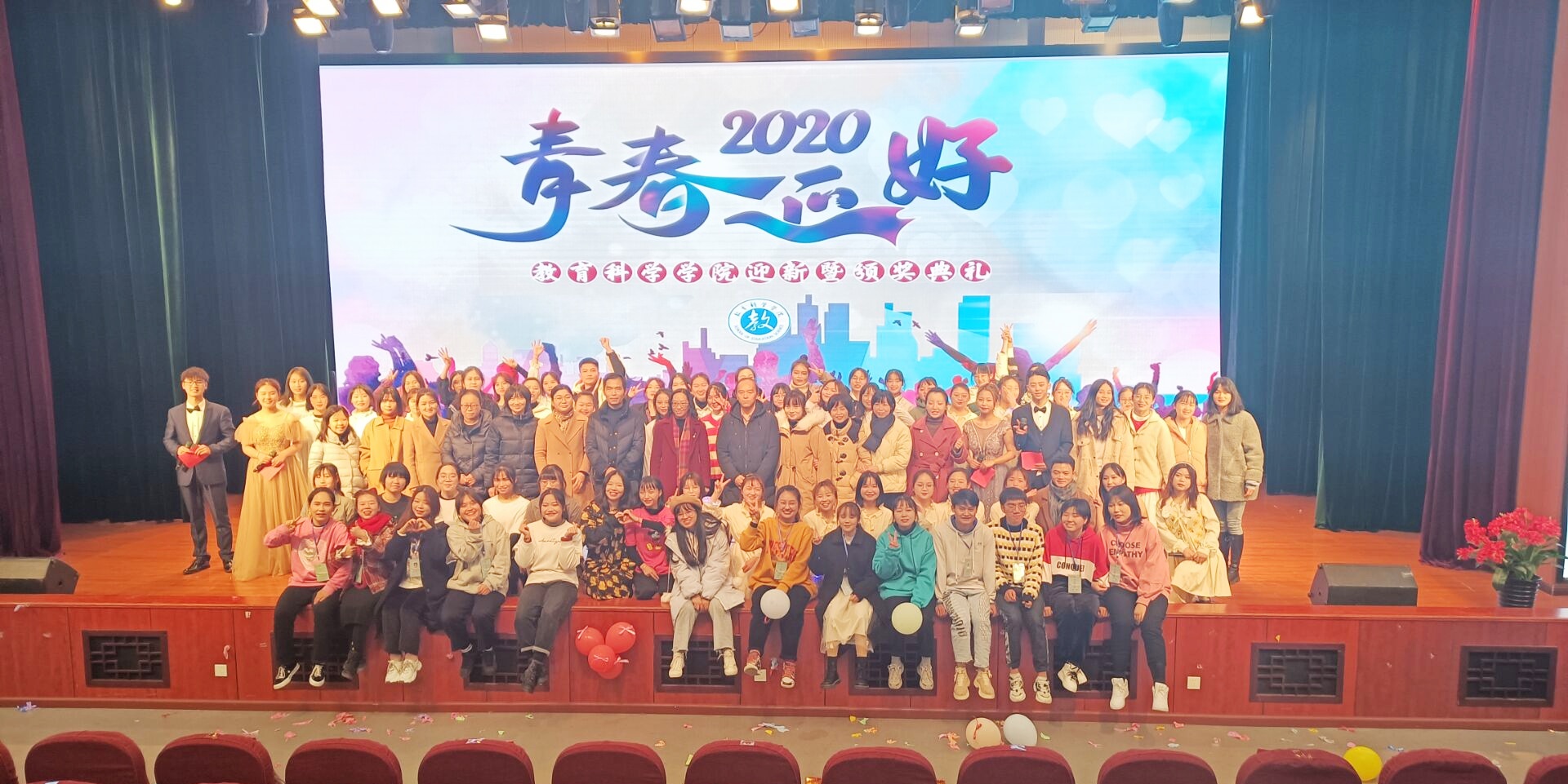 12月4日,教育科学学院在逸夫楼演播厅举办了2020年“青春正好”迎新暨颁奖典礼。学院领导、老师、辅导员及各学院主席团和各班代表都出席了此次典礼。