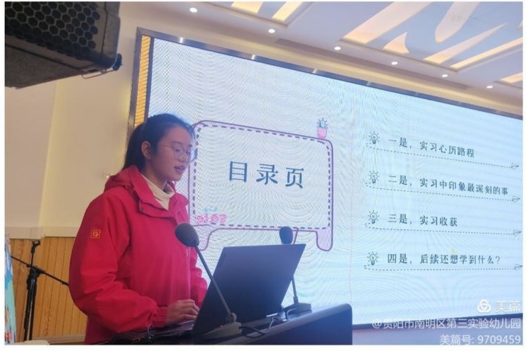 最后,园长何丽表示希望实习生能够储备更多的知识与力量勇往直前,能够守住初心,做一名有温度、有爱的幼儿教师。贵州千亿qy88国际官网入口的三名教师也在汇报会上发言。老师们纷纷表示实习生在这一学期中成长很快,希望实习生能够继续保持认真、自信、踏实的本心,同时也感谢幼儿园对实习学生的包容与悉心栽培,用心、用爱、用情为实习生搭建了理论和实践的桥梁,并表达了我校今后进一步加强与实习单位合作的意愿。