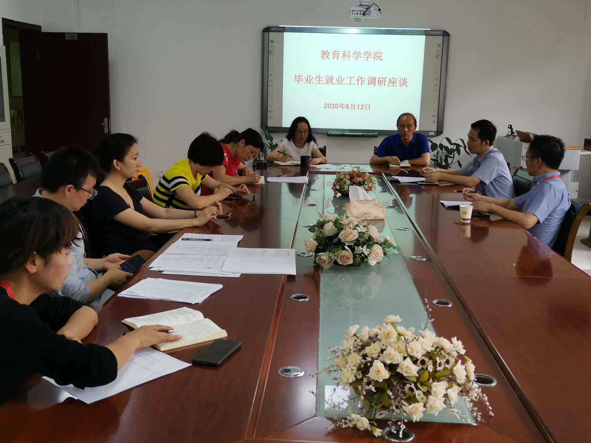 6月12日中午,教育科学学院在学院三楼会议室召开2020届毕业生就业工作调研座谈会,彭祥友书记主持会议,学院领导班子、系主任、毕业班辅导员、办公室主任参加会议。