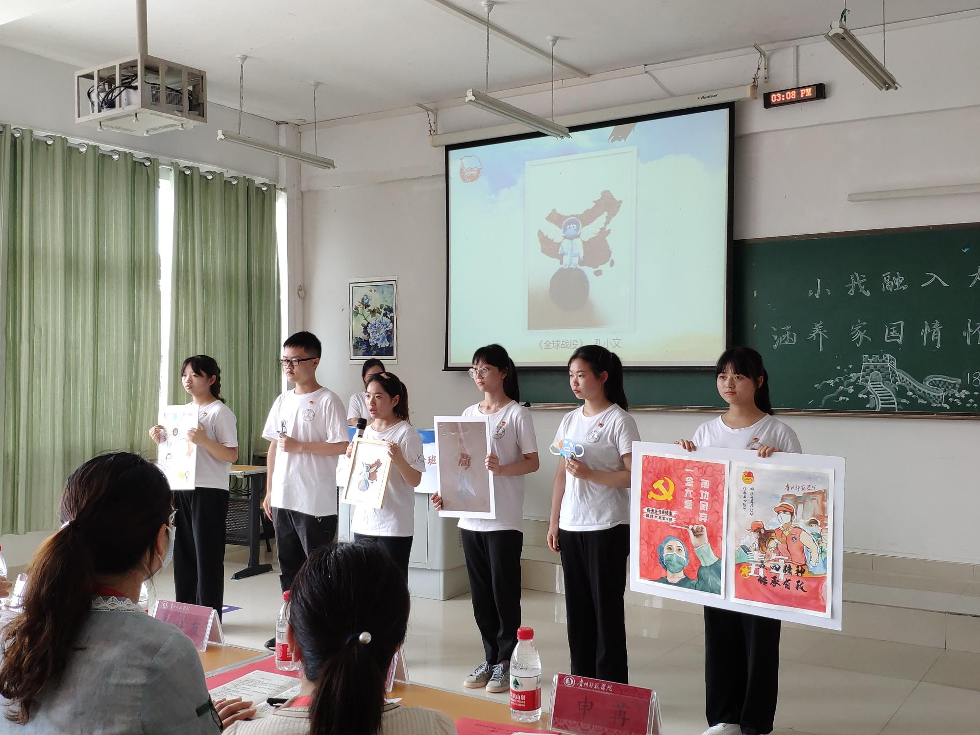 本次团日活动紧紧围绕“小我融入大我,涵养家国情怀”这一主题,通过观看《2020年政府工作报告》、参与疫情防控的志愿者分享自己的故事,“抗疫”朗诵《黑暗破晓时》、“抗疫”手工及绘画作品展示等内容进行。活动中,各位领导与同学们的思绪全程随着主持人的话语和各项活动开展起伏波荡。回顾了抗击疫情以来那些激励人心的温情时刻;重温了病毒来临时全国人民的众志成城的坚定毅力,感受到了同学们热情澎湃的青春风采和勇于担当的奉献精神;展望了当代大学生结合自身实际情况涵养家国情怀。