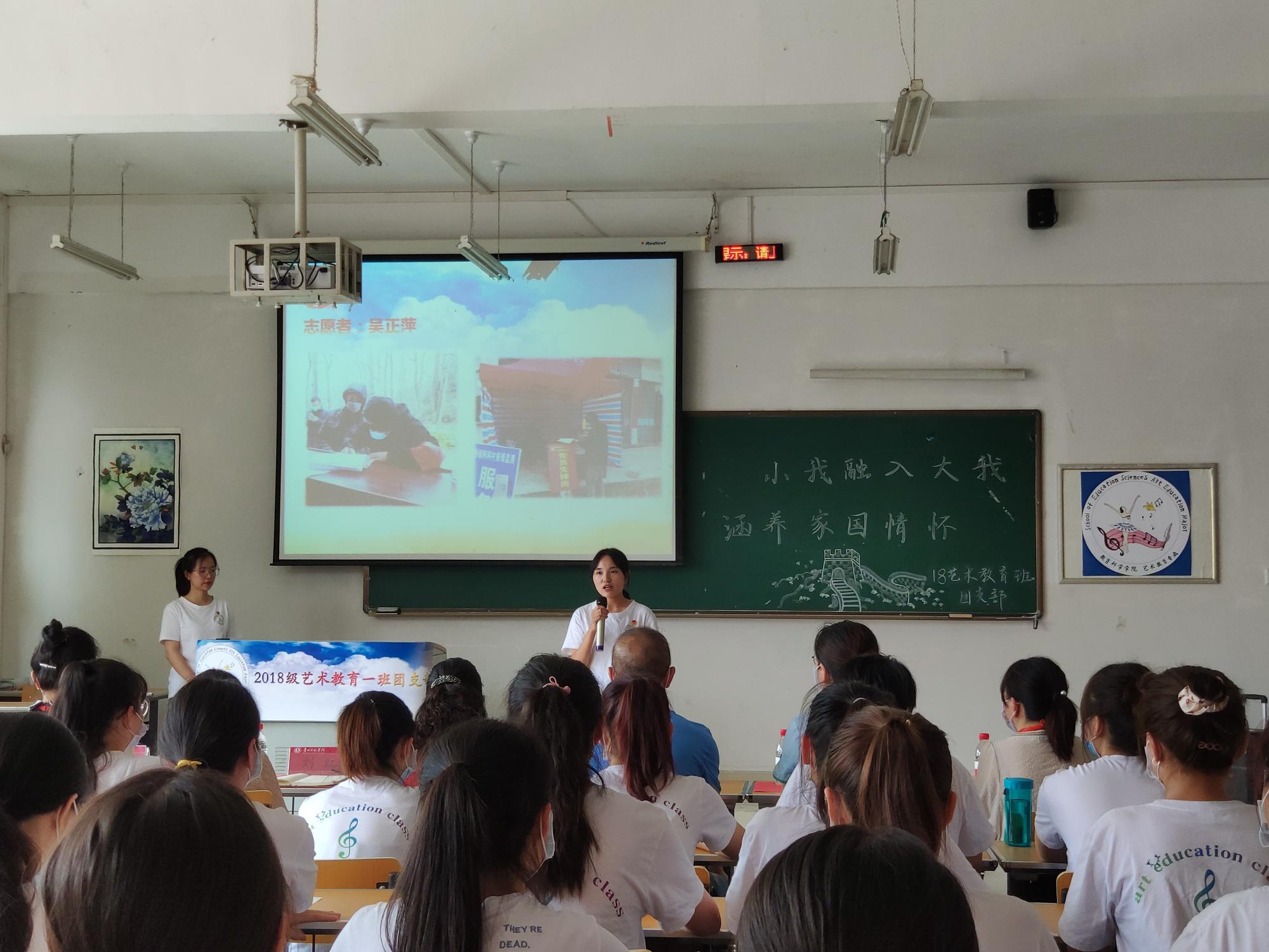 本网讯为认真学习贯彻习近平总书记关于志愿服务的重要指示精神和《2020年政府工作报告》,坚持培育社会主义核心价值观,强化社会责任意识、规则意识、奉献意识,大力弘扬“奉献、友爱、互助、进步”的志愿精神,6月29日下午教育科学学院18级艺术教育班在逸夫楼504开展关于“绽放活力青春,‘艺’起战胜疫情”的主题团日活动。我校副校长郭文、教育科学学院党委书记彭祥友、院长刘红、党委副书记傅小芳、团委书记张源、辅导员申苒出席此次活动,活动由艺术教育班杨青青同学主持。