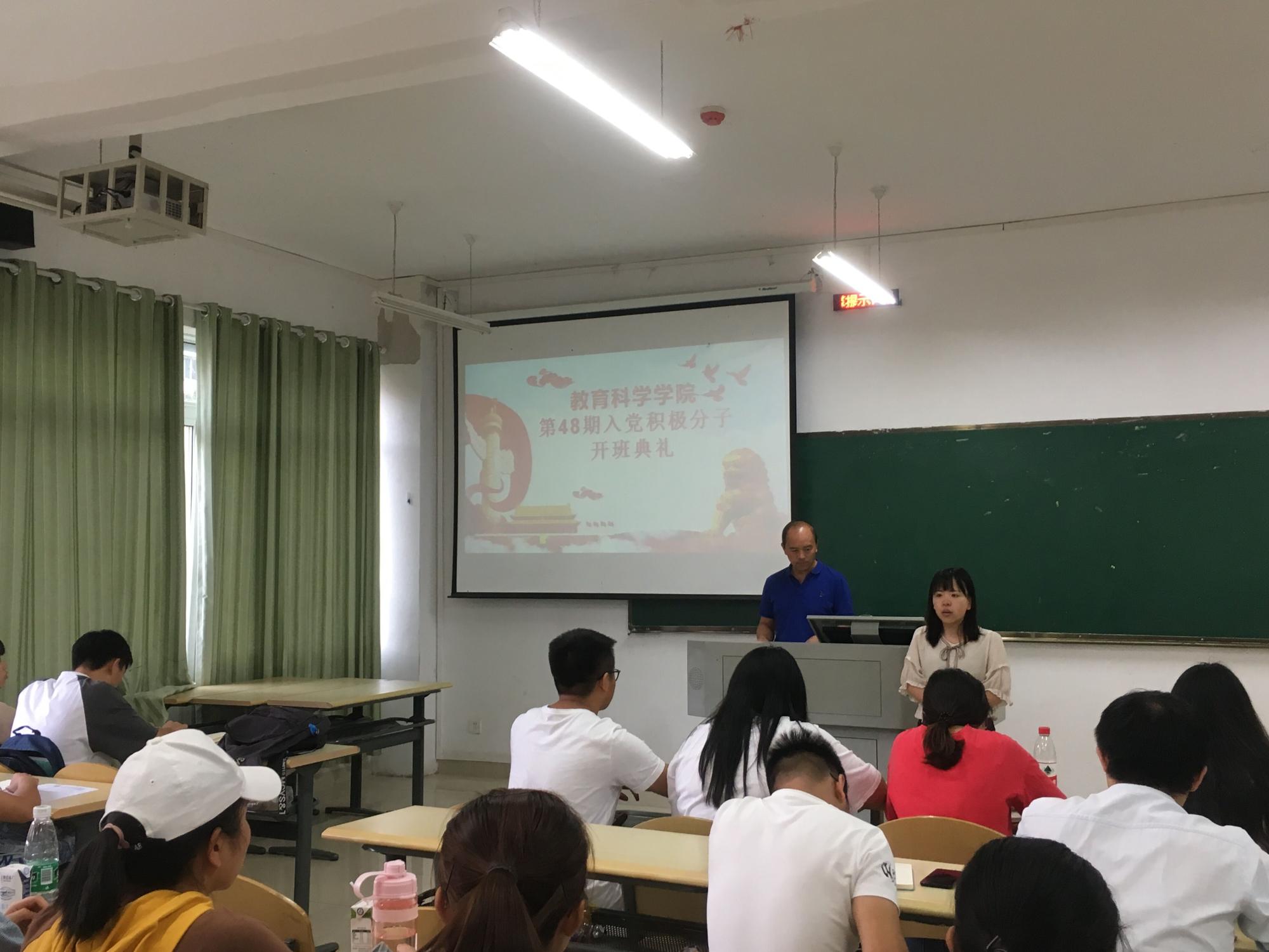 10月8日中午,教育科学学院第48期入党积极分子培训班在逸夫楼515进行开班,学院党委书记彭祥友、学生党支部书记申苒出席开班仪式,第48期全体学员到场参加。开班仪式由申苒主持。