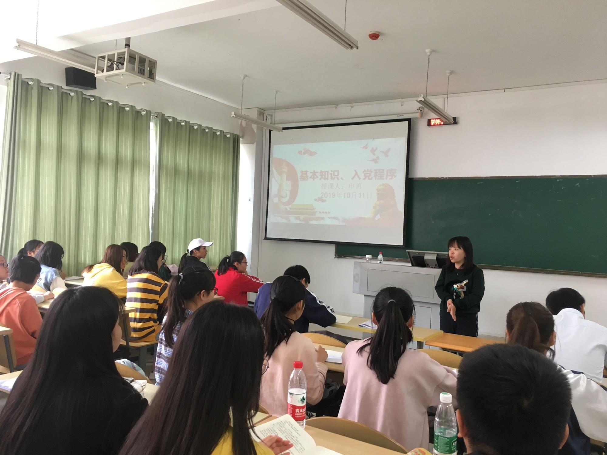 10月11日,教育科学学院第48期入党积极分子培训班迎来了第四场专题讲座,教育科学学院学生党支部书记申苒以“党的基本知识和入党程序”为题,在逸夫楼515教室为全体参训学员讲授了内容丰富的一课。