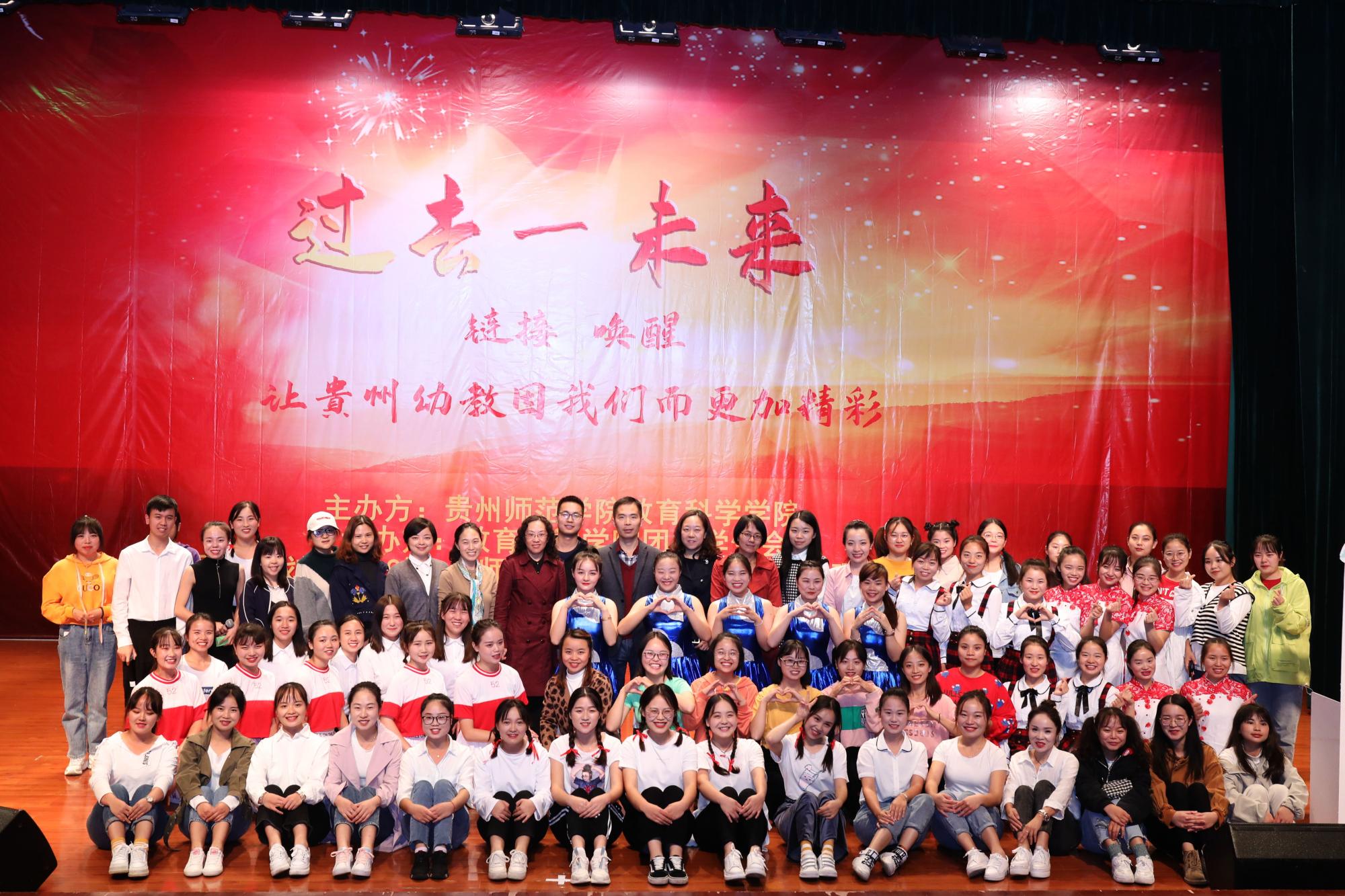 2019年10月14号晚上7点,贵州千亿qy88国际官网入口“过去—未来:链接与唤醒—让贵州幼教因我们而更加精彩”文艺晚会在逸夫楼演播厅盛大开幕,教育科学学院项目首席专家、院长刘红,副院长袁川,国培项目学科专家郑玉莲博士、刘英、张源、主懿芹老师,国培班班主任团队罗婷、李琴、冯静、申苒、何玉红、鲁蓓蓓老师,以及196名国培学员和100名学前教育本科生参加了本次晚会。
