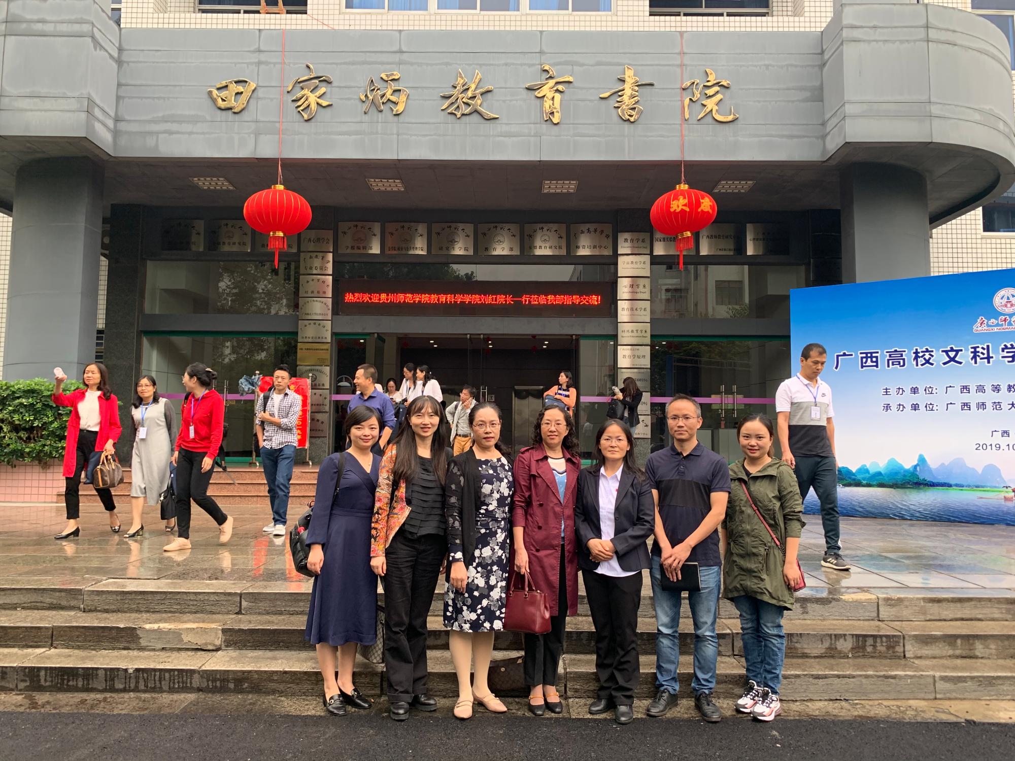为了学习省外高校学前教育专业办学经验,推动师范专业认证工作,2019年10月21—23日,贵州千亿qy88国际官网入口院长刘红教授、副院长黎平辉教授、学前教研室主任娄小韵教授、学前教育专任教师陈泽静、何玉红教师前往首批师范专业认证试点单位广西师范大学,就学前教育师范专业认证、学前教育专业综合改革、课程建设等方面进行学习考察。