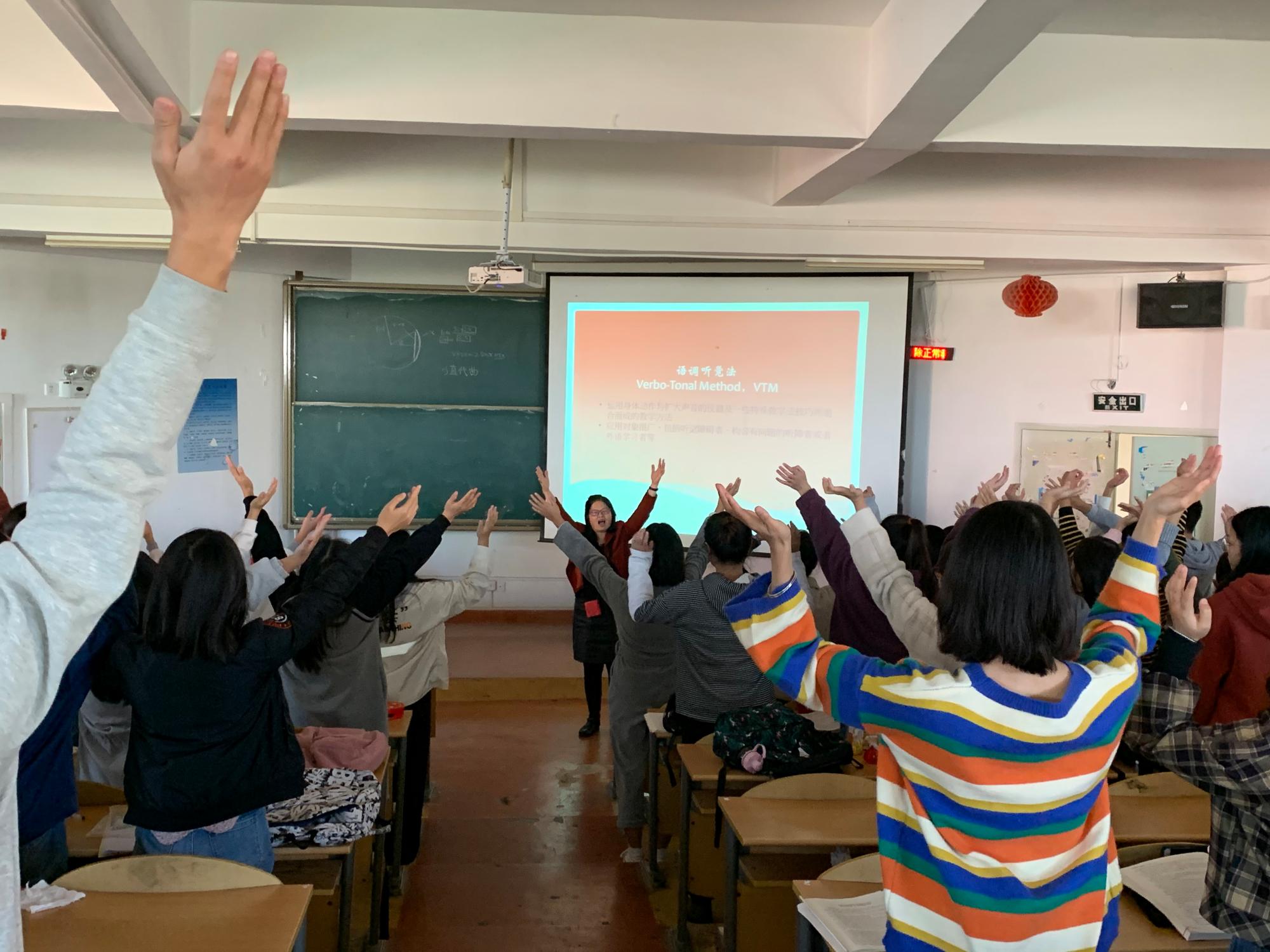 下午的讲座,蔡老师主要以实践为主,给同学们分享了许多关于听力障碍的教学方法。蔡老师提供了丰富的教学视频,通过看视频,帮助同学们将理论与实际联系在一起;同时,蔡老师也通过现场教学,直接指导学生如何使用这些教学方法。蔡老师还分发了许多不同类型的听能训练的乐器,并教同学们如何使用这些乐器来训练儿童的听觉区辨能力。通过这种方式,同学们将理论与实际相结合,更深刻地理解了听力障碍儿童教学方法。