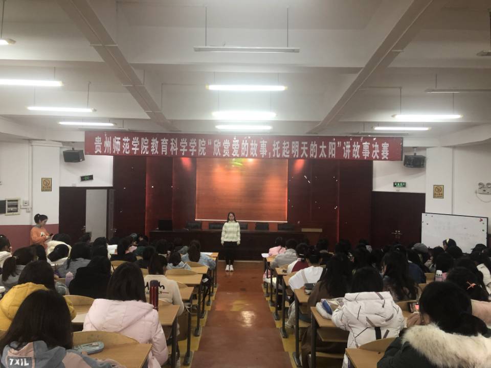 2019年11月22日13时,贵州千亿qy88国际官网入口学前教育专业“欣赏爱的故事,托起明天的太阳”讲故事大赛总决赛在致远楼隆重举行。经过初赛层层的选拔,七十多名选手脱颖而出,进入了本次的总决赛。出席本次活动的评委为学前教育系教师,主持人是18级学前教育二班刘瑜,本次比赛采用现场打分的形式。