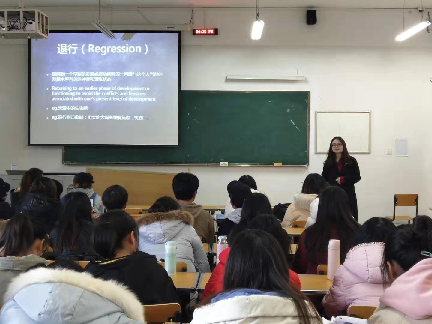 12月12日下午,我校教育科学学院邀请州财经大学吴茜副教授在逸夫楼504教室给2018级应用心理学2班做了“防御机制与日常生活”的专题讲座。