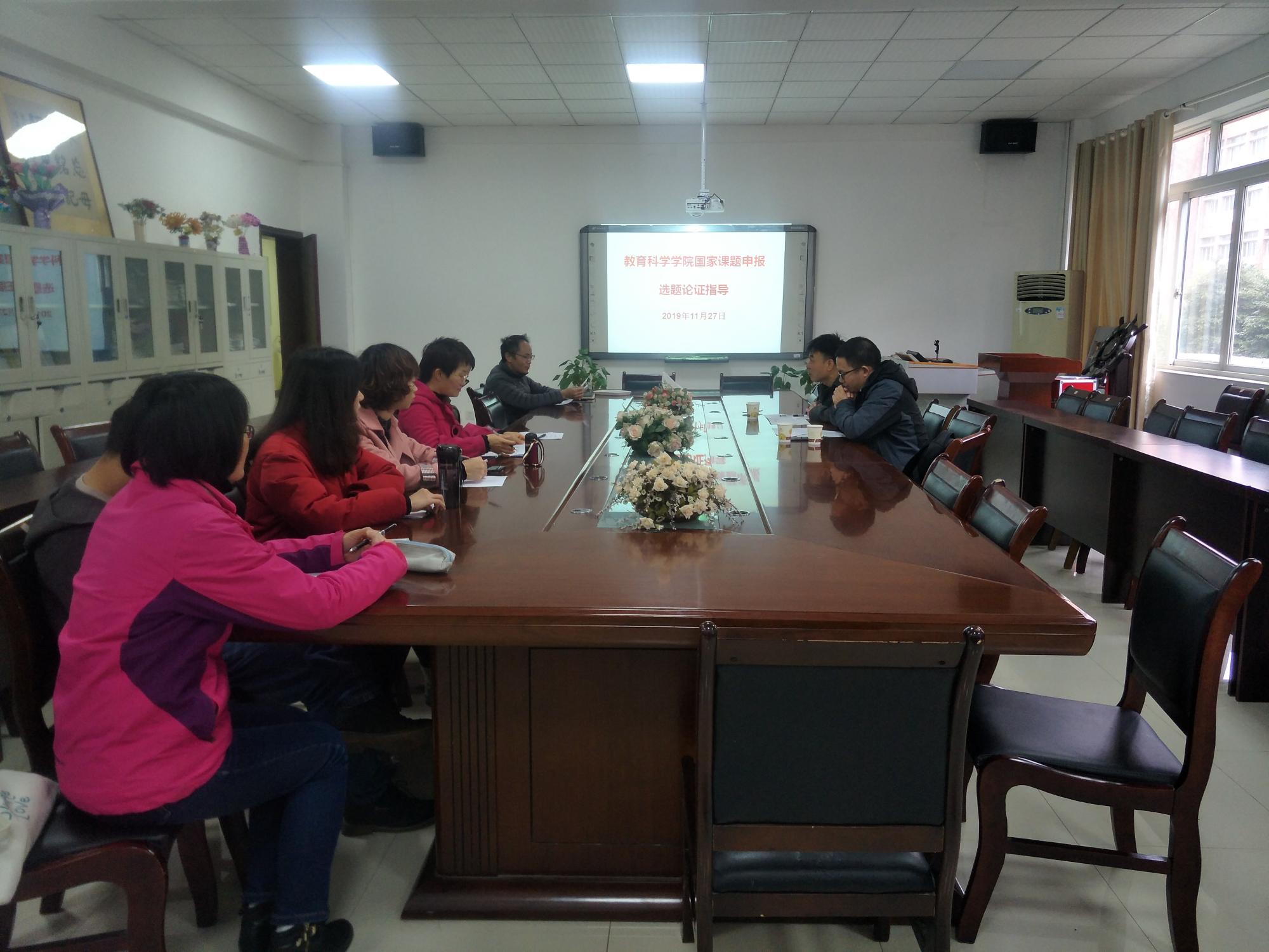 2019年11月28日下午,教育科学学院在逸夫楼会议室组织召开国家级课题申报选题论证指导会。论证指导会特邀了贵州师范大学教育科学学院学前教育系李旭博士、贵州财经大学肖庆华博士作为指导专家。答辩会由学院黎平辉院长主持,学院副高级以上职的老师参加了本次指导会议。