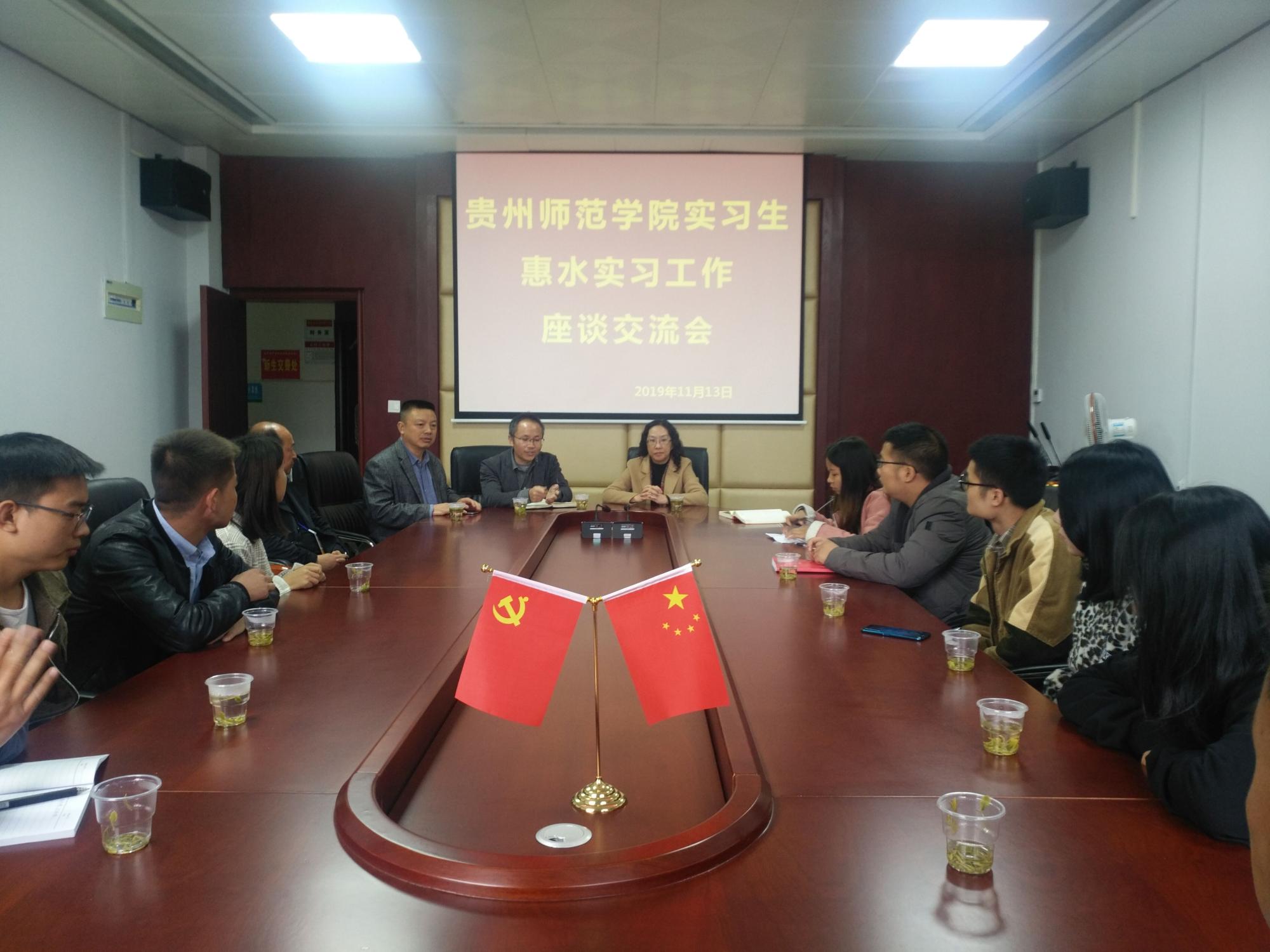 2019年11月13日,教育科学学院院长刘红、副院长黎平辉在惠水县教育局曹和明科长的陪同下,先后到惠水县濛江实验中学、惠水县实验小学、惠水县职业中学、惠水县第二中学、惠水县第二幼儿园等实习单位看望贵州师范学院实习生。
