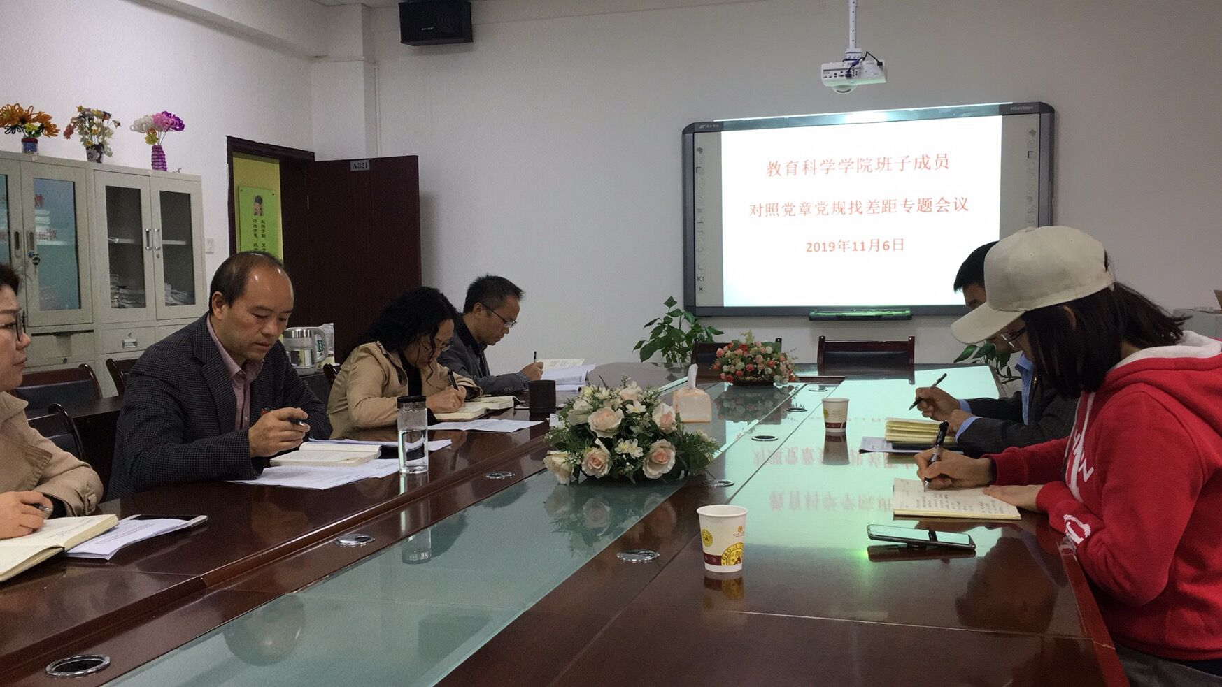 11月6日上午9:00,教育科学学院班子成员对照党章党规找差距专题会议在逸夫楼三楼会议室召开,全体班子成员到场参加,学校“不忘初心、牢记使命”主题教育办公室郝进欣、梁旭莉同志到场指导。会议由院党委书记彭祥友主持。