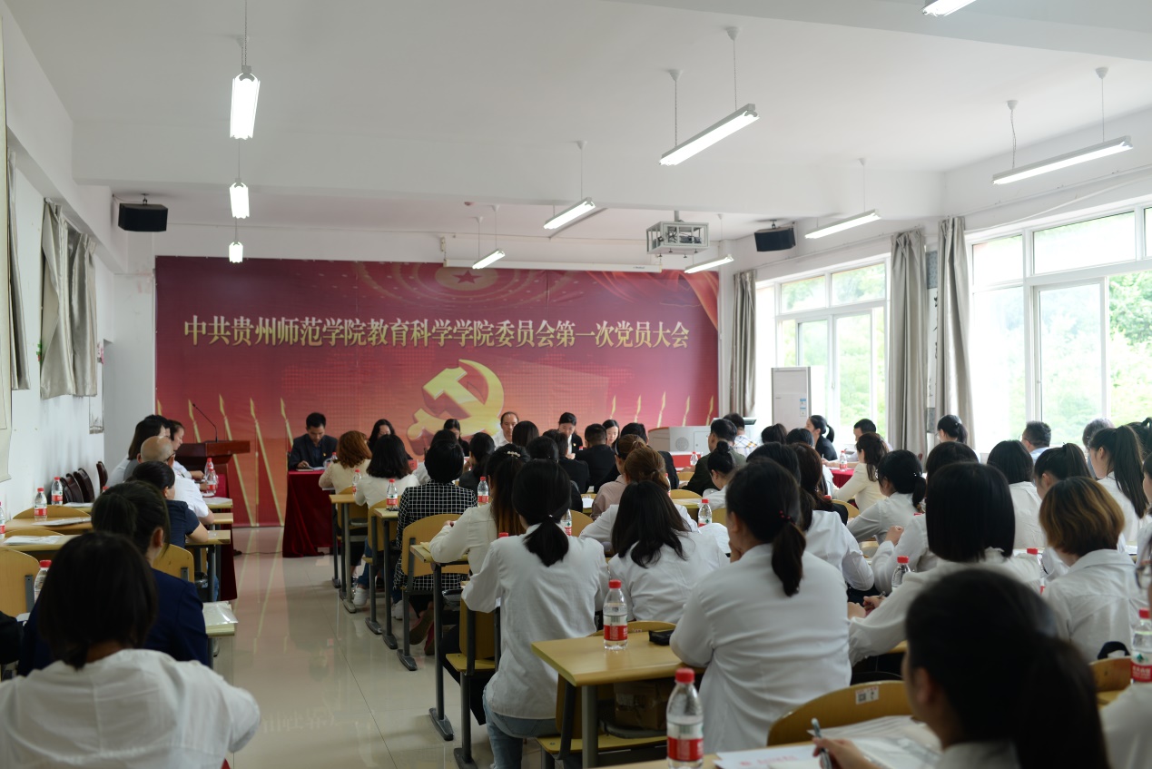 2019年5月24日,教育科学学院于逸夫楼416顺利召开中共贵州千亿qy88国际官网入口委员会第一次党员大会。出席本次会议的领导有:副校长郭文,学校换届办组织组李艳琴、王万强。全院师生党员参加大会,会议由刘红同志主持。