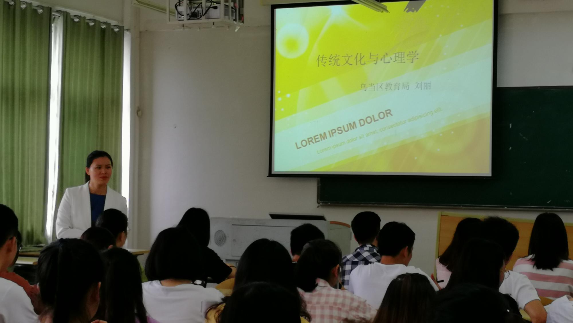 6月11日下午,我校教育科学学院邀请贵阳市国学专家刘丽,在逸夫楼504教室做了“传统文化与心理学”的专题讲座,应用心理学系2016级学生和部分老师参加了此次讲座。