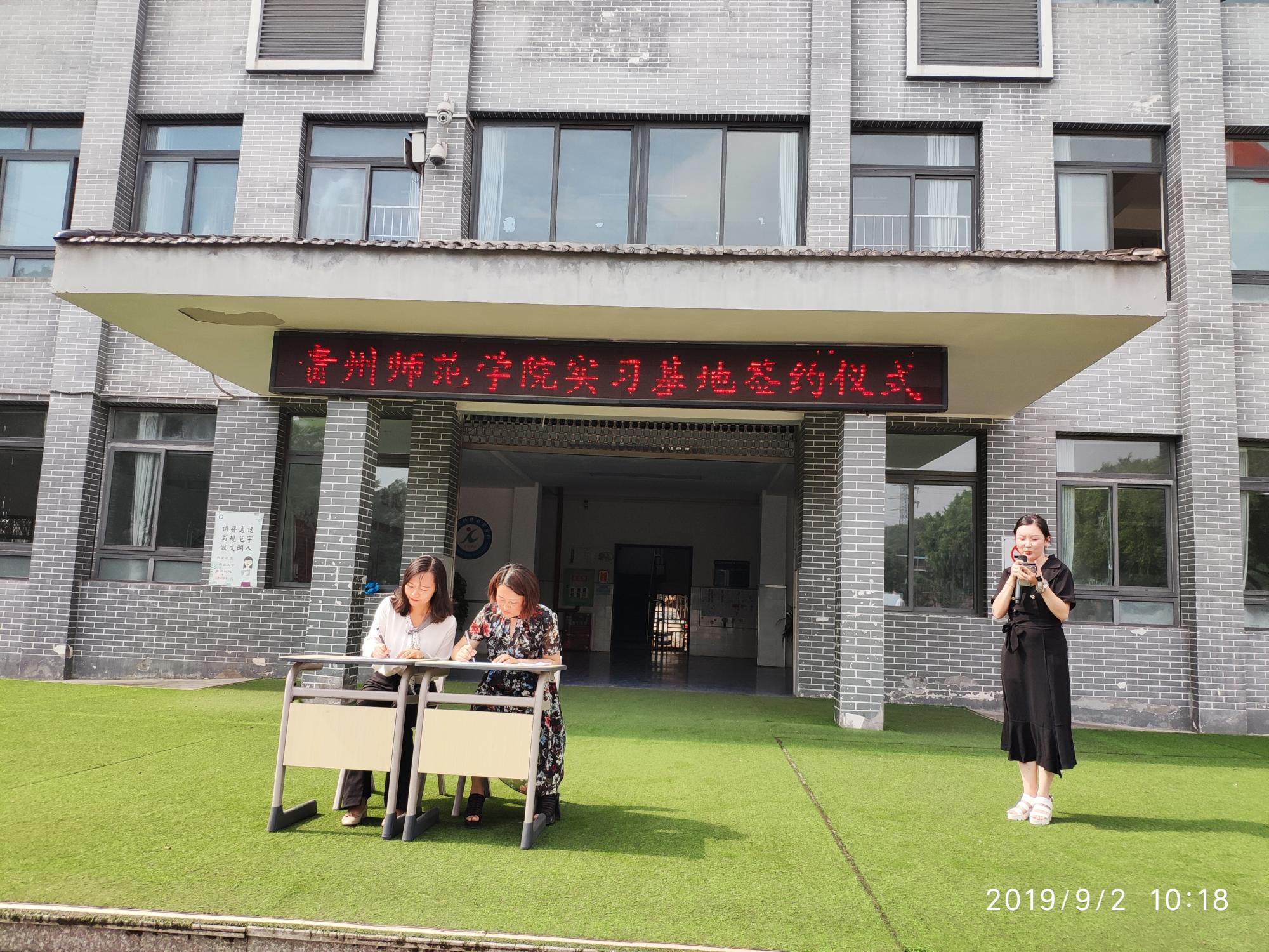为促进高校与一线特殊教育学校的优势互补,实现资源共享和共同发展,加强校地合作与跨区域合作,2019年9月2日上午,贵州千亿qy88国际官网入口特殊教育系系主任杨娟赴重庆与重庆市永川区特殊教育学校校长蒋家裕、副校长伍斯梅,及该校教师代表共同商讨共建实践教学基地建设的具体内容和条目,并达成共识,双方签订合作协议并举行授牌仪式。