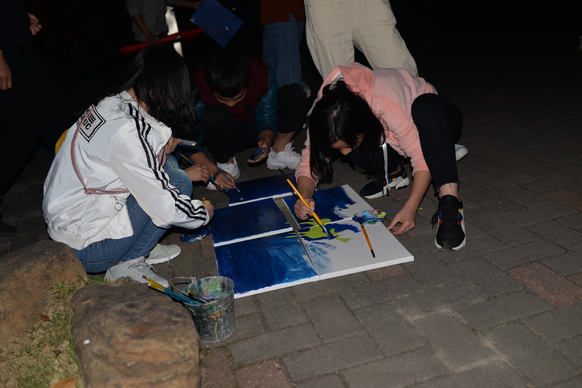 活动伊始,教育科学学院团委书记张源到场亲自指导准备工作,由团委学生会副主席金昌玲给大家详细的介绍活动规则,还特别强调安全第一的原则。之后,大家纷纷开始各自的工作,每位同学拿到一张画板,开始给画板上色,同时要找到与自己画板相连的画板,共同探讨研究该怎么做。在全体同学的共同努力下,历经两个小时,60张画板圆满完成,拼成了一副大海报。随后,此次活动的5位代表同学点燃蜡烛,呼吁“熄灯一小时,环保60分”并合影留念。至此,此次活动圆满结束。