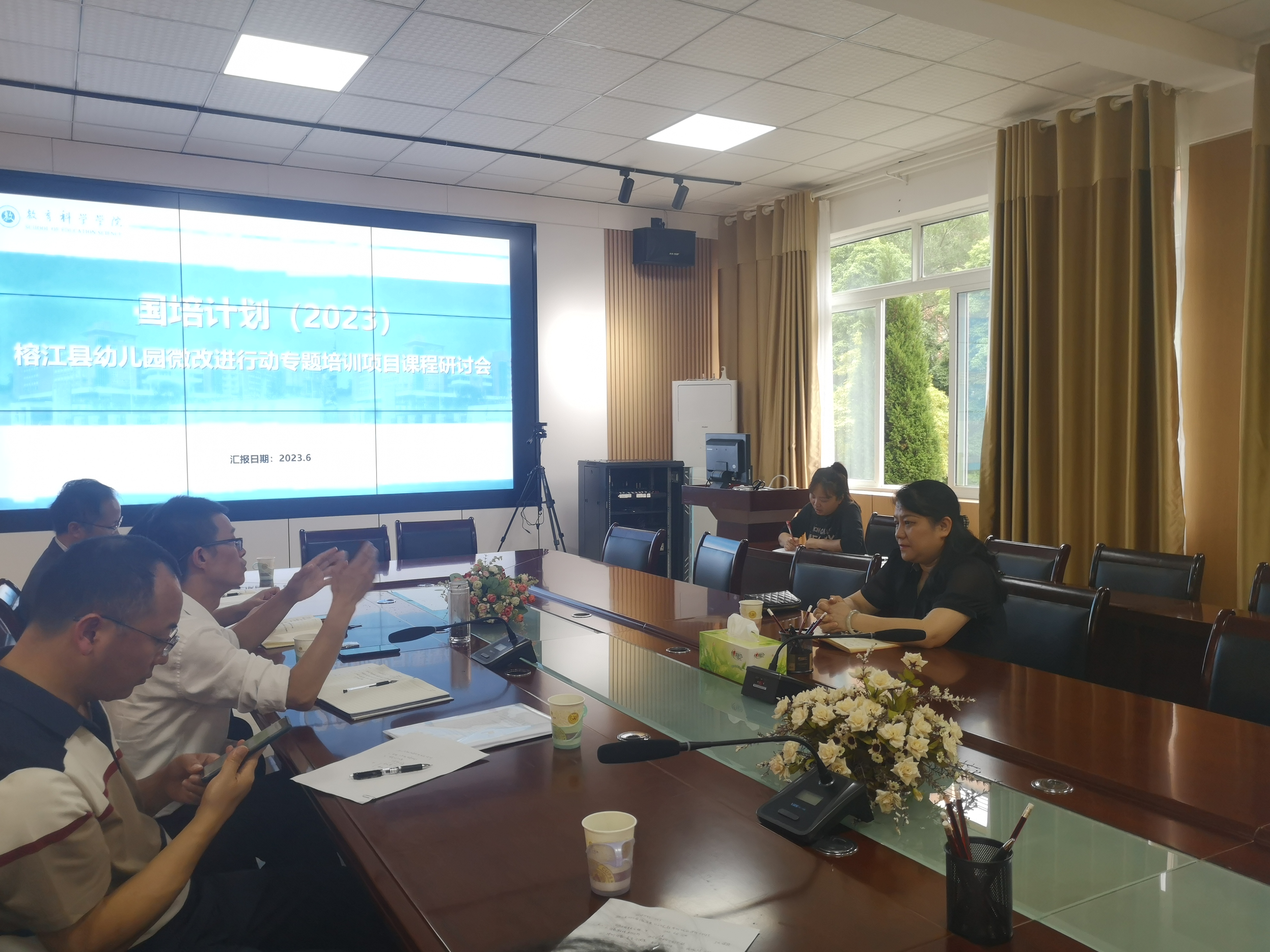2023年6月15日上午,“国培计划(2023)”——榕江县幼儿园微改进行动专题培训项目课程研讨会在逸夫楼教育科学学院会议室A321举行。本次研讨会由教育科学学院项目负责人陈泽婧主持,继续教育学院党委书记韦丹、教育科学学院院长宋万琚、教育科学学院党委副书记傅小芳、教育科学学院副院长黎平辉、继续教育学院教师姚晓峰、教育科学学院教师汤艳玲、教育科学学院教师李琴参加了本次会议。