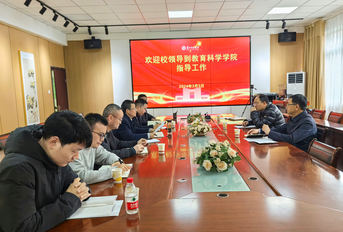 为进一步凝聚力量、振奋精神,进一步贯彻落实好校党委“十个聚焦,十个发力”安排部署精神,指导学院理清发展思路、明确工作重点和关键点,3月5日上午,校党委委员、副校长潘运和校长助理潘煜到教育科学学院进行调研和指导工作。校党政办公室副主任杜彪陪同调研。教育科学学院院长宋万琚主持会议,心理健康教育与咨询中心副主任谢其利、教育科学学院副院长袁川、教育科学学院教师罗凯、李强、赵政、汤艳玲参加会议。