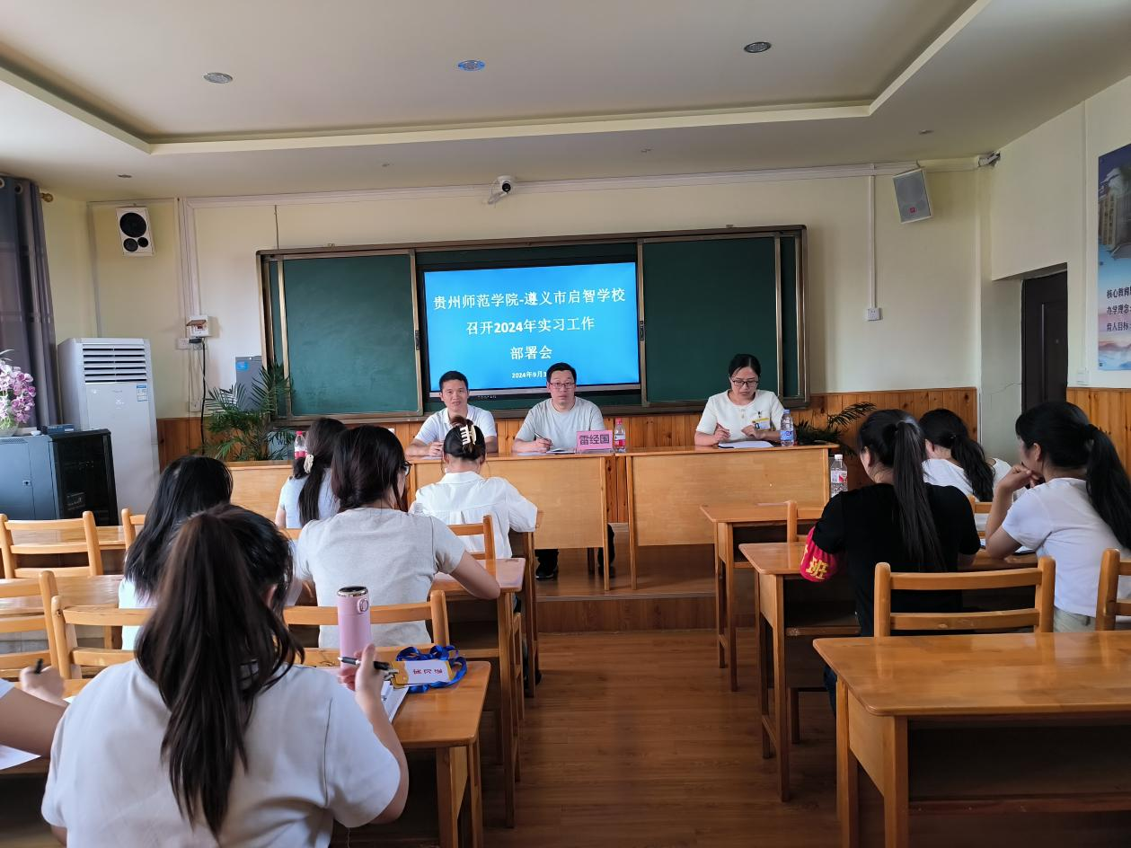 2024年9月3日,星期二下午,“贵州师范学院—遵义市启智学校2024实习工作部署暨实习单位指导教师培训会”在遵义市启智学校顺利召开,遵义市启智学校承担2024年实习指导任务的所有教师、贵州师范学院赴遵义市启智学校实习学生参加了会议。