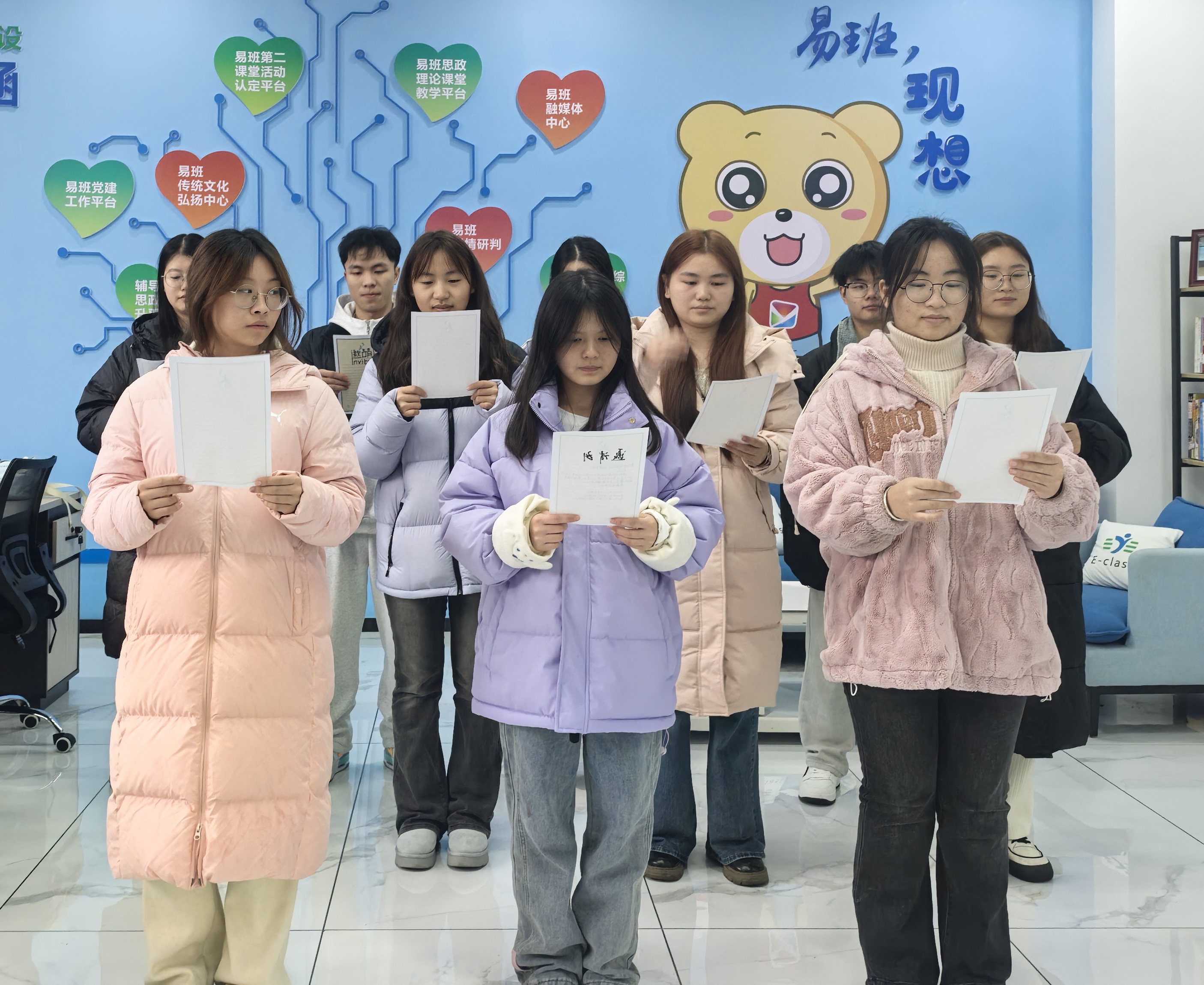 最后,同学们来到易班发展中心进行了宪法晨读活动。同学们精神饱满、高声诵读,将宪法精神铭刻于心,极大的增强了对宪法的内在认同感。。