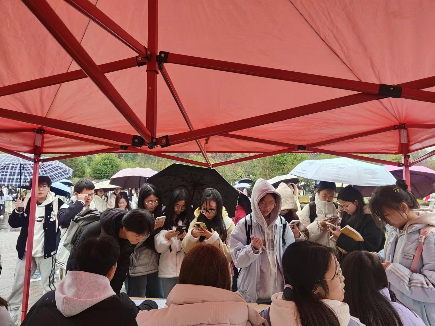 在活动现场,前来参与活动的同学积极有序地扫码、冷静的进行答题,本次活动的题目涵盖了宪法的历史渊源、基本原则、公民权利与义务等多方面知识,全面考查了学生对宪法的理解与掌握程度。在答题过程中,同学们认真思考、仔细作答,展现出了对宪法知识的浓厚兴趣和对法治精神的敬畏。许多同学表示,通过此次答题活动,他们对宪法有了更深入的认识,明白了宪法在国家法律中的重要地位和在生活中的重要作用。