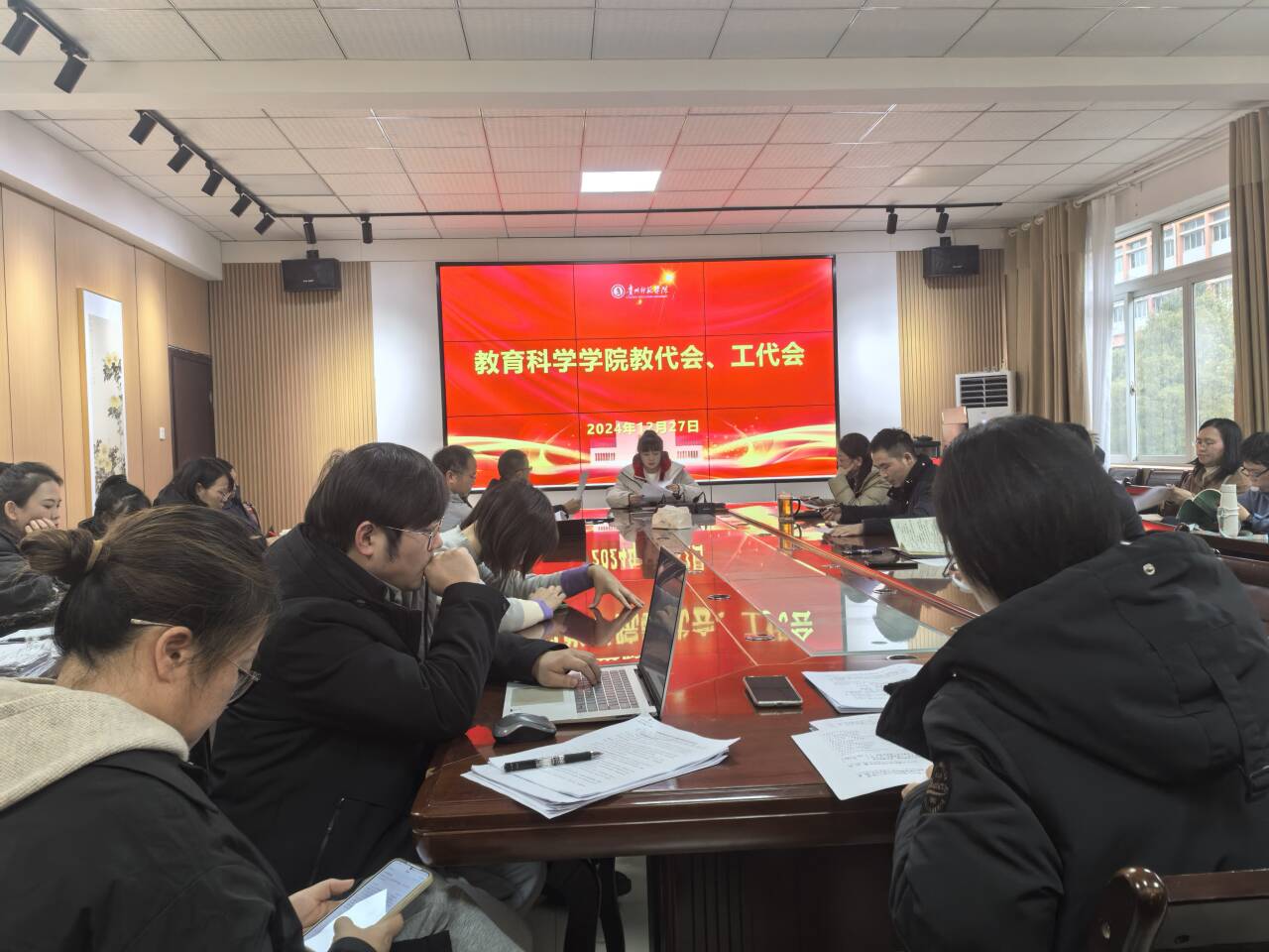 为进一步加强民主政治建设,充分调动广大教职工参与学院建设的积极性,2024年12月27日下午,教育科学学院在逸夫楼三楼会议室召开教职工代表大会。学院党委书记肖湘萍、院长宋万琚、党委副书记傅小芳、副院长黎平辉、副院长袁川以及全体教职工参加了此次会议。