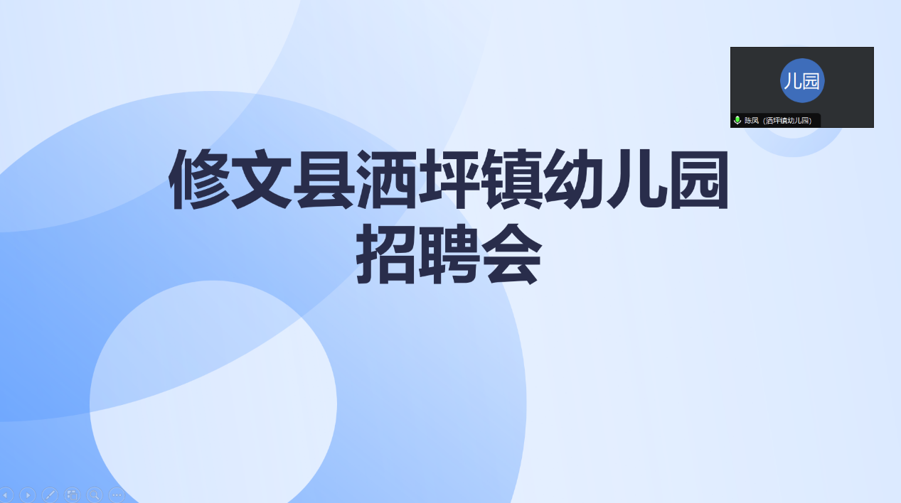 为给毕业生提供更多优质的就业机会,2025年3月6日,教育科学学院与修文县洒坪镇幼儿园联合举办了学前教育线上专场招聘会。教育科学学院党委副书记傅小芳,学院对接招生就业指导处负责老师、21级学前教育专业辅导员张思远参加了此次招聘会。