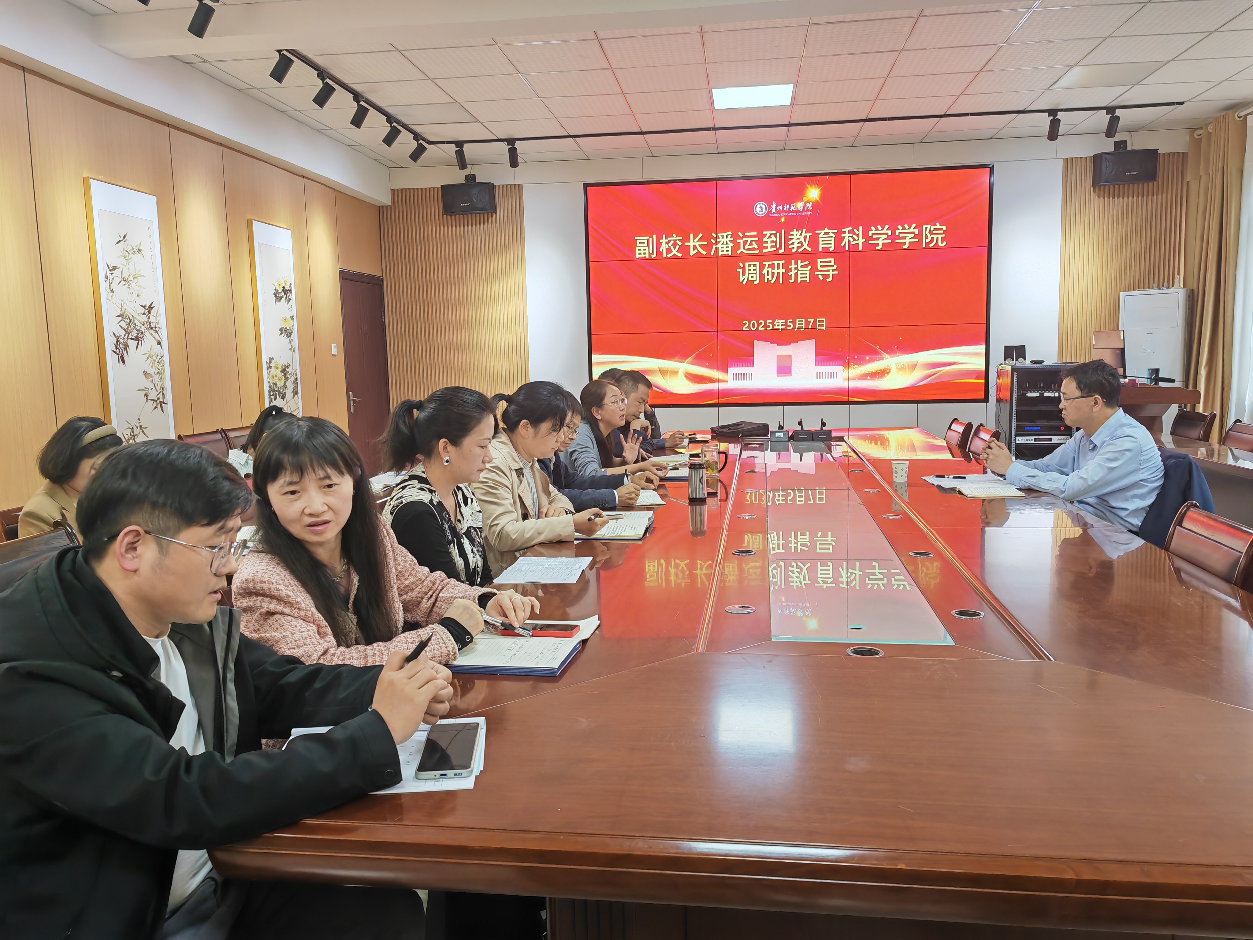 5月7日下午,为深入贯彻落实全国、全省高校毕业生等青年就业创业工作视频会议精神,指导学院全面分析把握就业影响因素和系统推进就业工作落地见效,校党委委员、副校长潘运到教育科学学院专题调研指导就业工作。学院领导班子、全体系主任和辅导员参会。