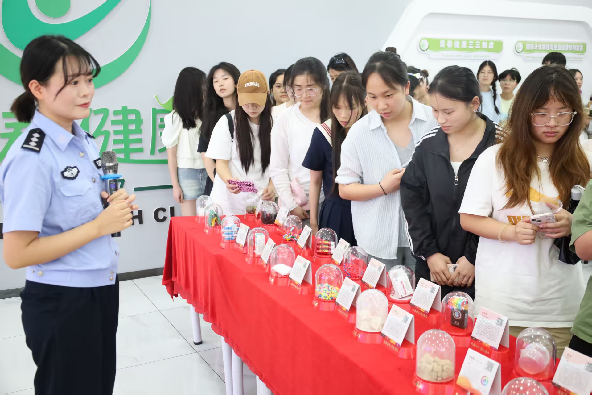 讲座的高潮部分,李璇将仿真毒品标品带到了现场供同学们认识了解。她结合实物,详细讲解了传统毒品与新型毒品的外观特征、种类以及吸食后的反应和危害,让同学们对毒品有了更直观、更清晰的认识。李璇还分享了在工作中遇到的真实案例,用一个个惨痛的教训告诫同学们要时刻保持警惕,坚决抵制毒品诱惑,共同守护自己的青春防线。