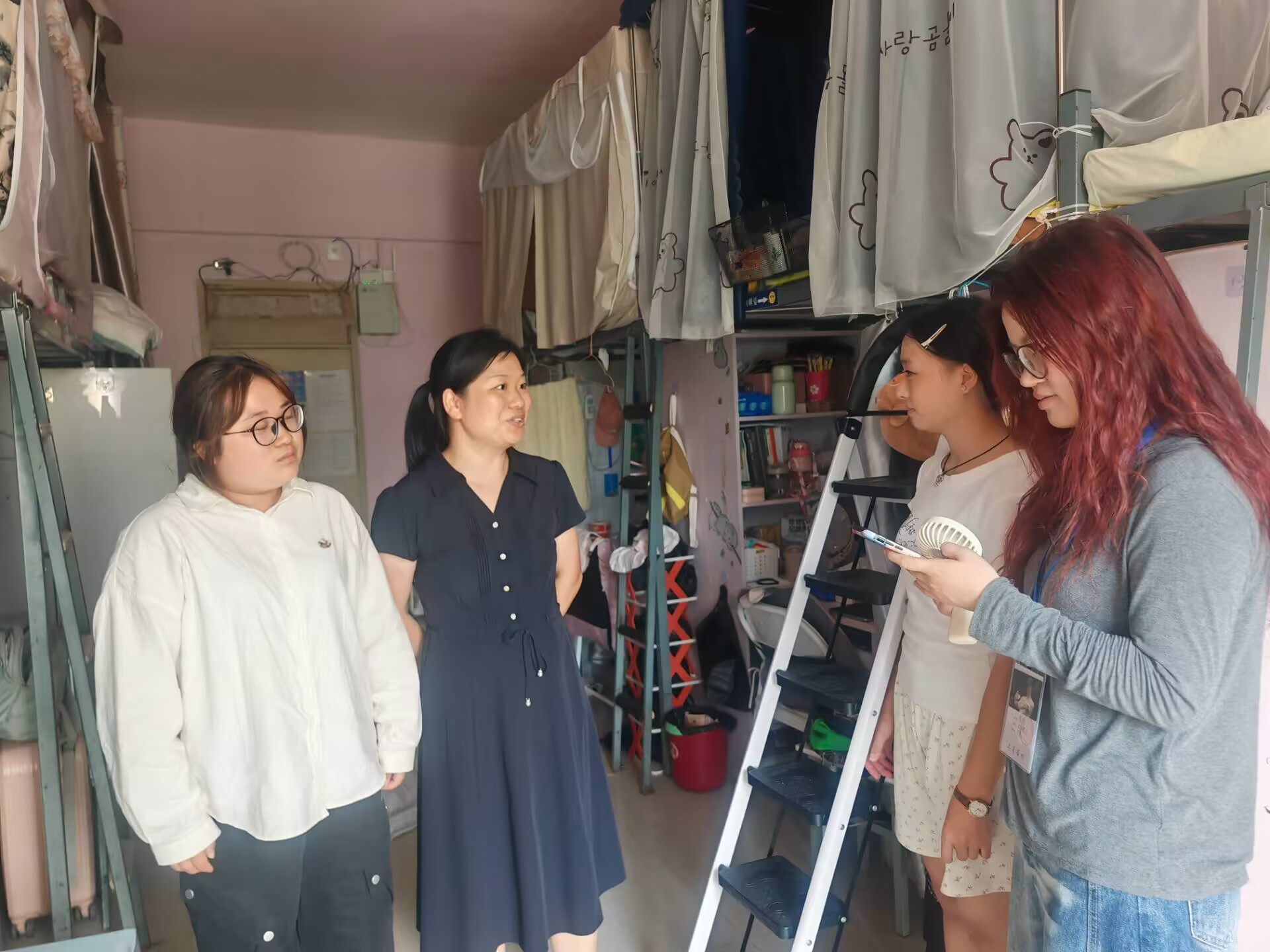 9月4日下午,教育科学学院党委书记肖湘萍、院长宋万琚、党委副书记傅小芳、副院长黎平辉及团委学生会同学走进寝室,看望2025级新生及家长。