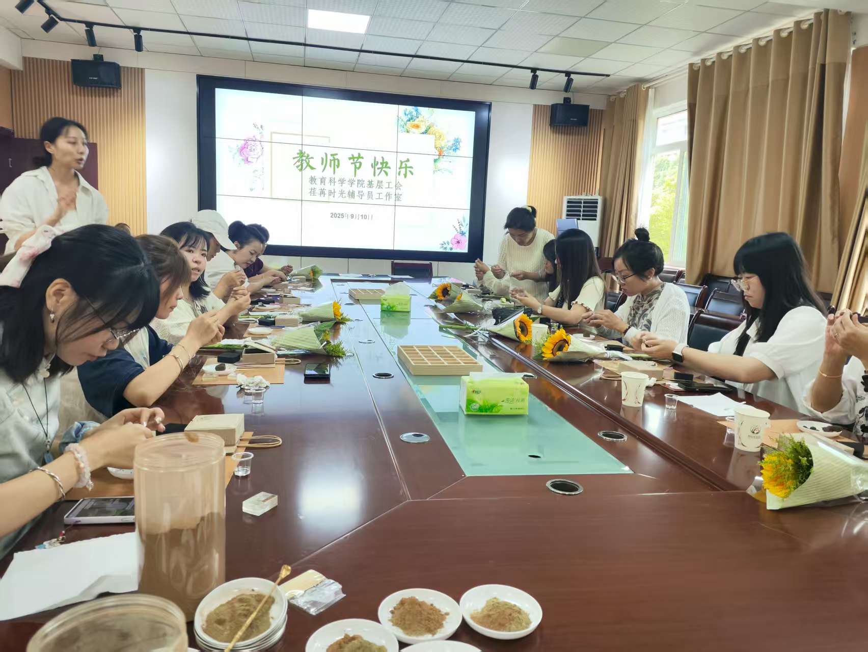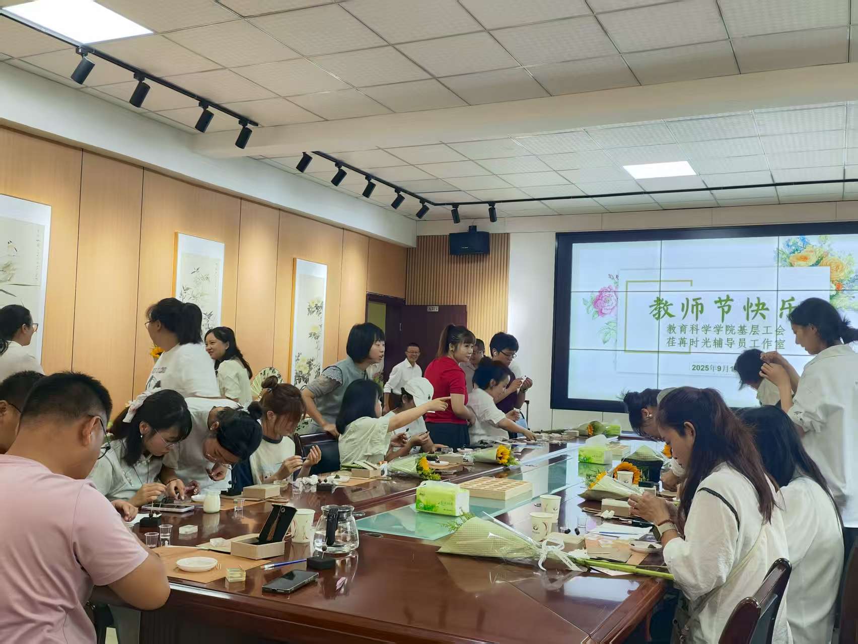 9月10日上午,教育科学学院在逸夫楼A321会议室成功举办了一场别开生面的教师节特别活动——“中药手串手作”体验活动。本次活动以“本草传情,手泽心香”为主题,旨在通过传统手工艺制作,向辛勤耕耘的教师们表达节日的祝福与敬意,同时弘扬中医药文化,舒缓教师工作压力。