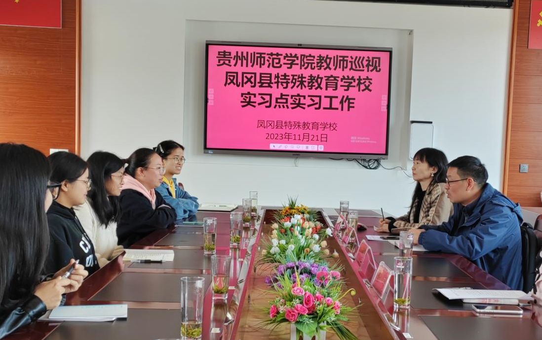 为了解学生实习情况,拓展学生实习及就业岗位,进一步深化与实习单位的合作,11月21日,教育科学学院特殊教育系系主任雷经国、学前教育系系主任娄小韵等一行到凤冈县特殊教育学校开展教育实习巡回指导和访企拓岗工作。凤冈县特殊教育学校的谢奎校长、朱宁宁老师和实习生了参加座谈会。