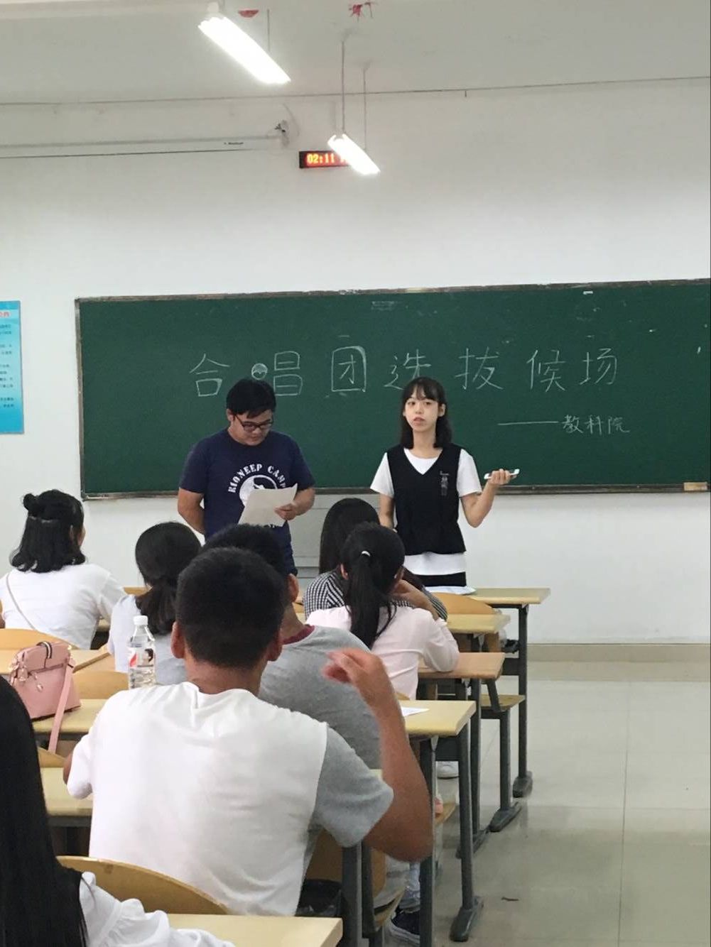 9月9日下午,教育科学学院学生合唱队选拨在逸夫楼514教室进行。院团委书记申苒、艺术教研室主任马慧慧、钢琴声乐老师张怡出席并担任此次选拔赛的评委。