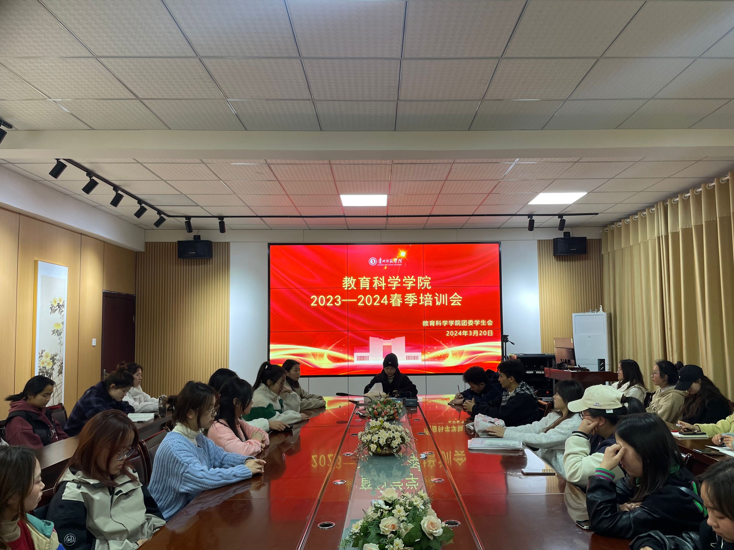 为了进一步加强团委学生会学生干部队伍建设,提升学生干部自我管理与自我服务的水平。3月20日,教育科学学院团委学生会在逸夫楼321会议室举办春季培训会,本次会议由杨诗韵主持及团委学生会全体成员共同参加。
